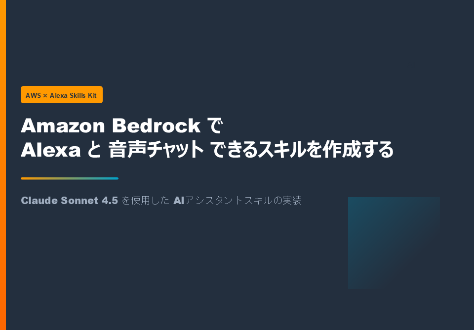 Amazon BedrockのClaude Sonnet 4.5を使って、Alexaに話しかけるとAIが音声で応答するスキルを作成しました。