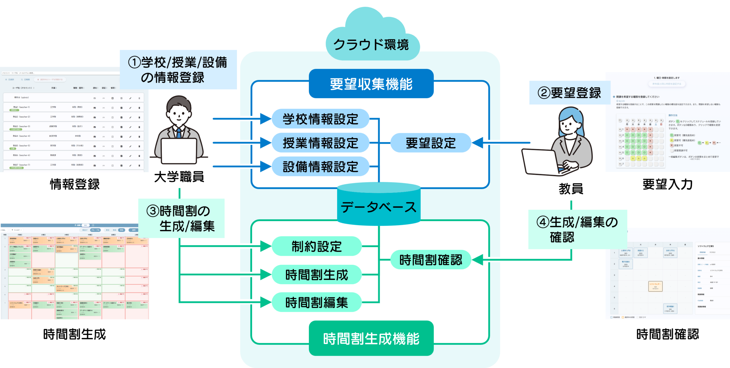 ● 各種情報の収集から時間割の作成までクラウドサービスで一元化。インターネット接続環境があればすぐに利用が可能